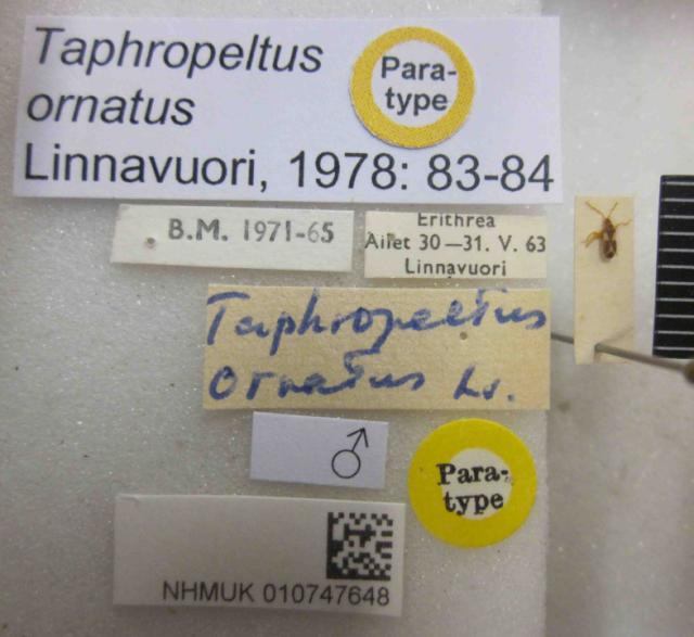 Taphropeltus ornatus. Paratype. (BMNH) - (CC BY-NC 4.0) Photo by Stuart Cole, reproduced with permission from the Natural History Museum, London, UK.
