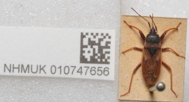 Rhyparochromus maderensis. Paralectotype- dorsal habitus. (BMNH) - (CC BY-NC 4.0) Photo by Stuart Cole, reproduced with permission from the Natural History Museum, London, UK.