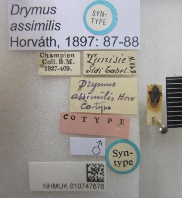 Drymus assimilis. Syntype. (BMNH) - (CC BY-NC 4.0) Photo by Stuart Cole, reproduced with permission from the Natural History Museum, London, UK.