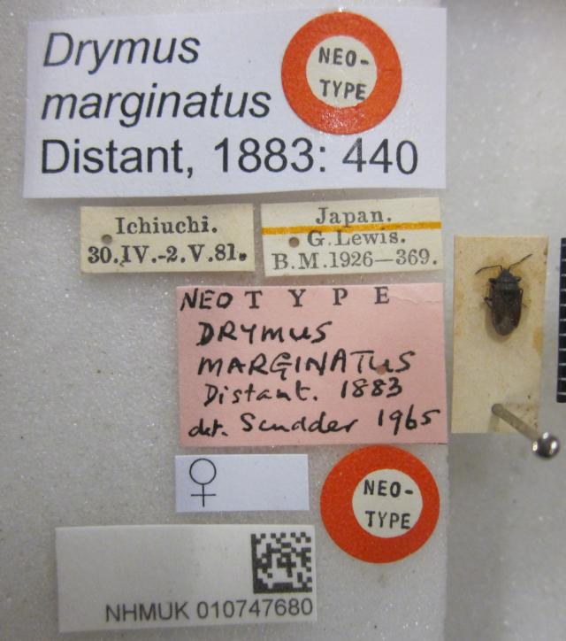 Drymus marginatus. Neotype. (BMNH) - (CC BY-NC 4.0) Photo by Stuart Cole, reproduced with permission from the Natural History Museum, London, UK.