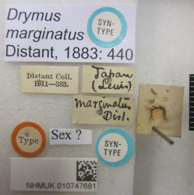 Drymus marginatus. Syntype. (BMNH) - (CC BY-NC 4.0) Photo by Stuart Cole, reproduced with permission from the Natural History Museum, London, UK.