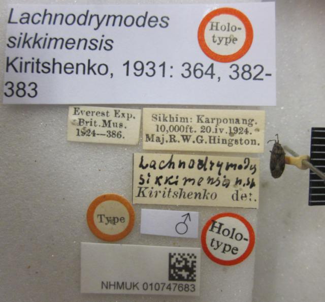 Lachnodrymodes sikkimensis. Holotype. (BMNH) - (CC BY-NC 4.0) Photo by Stuart Cole, reproduced with permission from the Natural History Museum, London, UK.