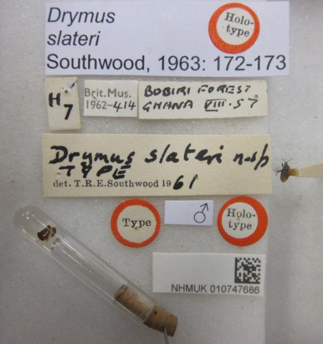 Drymus slateri. Holotype. (BMNH) - (CC BY-NC 4.0) Photo by Stuart Cole, reproduced with permission from the Natural History Museum, London, UK.