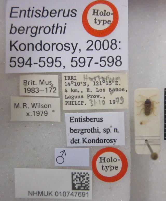 Entisberus bergrothi. Holotype. (BMNH) - (CC BY-NC 4.0) Photo by Stuart Cole, reproduced with permission from the Natural History Museum, London, UK.