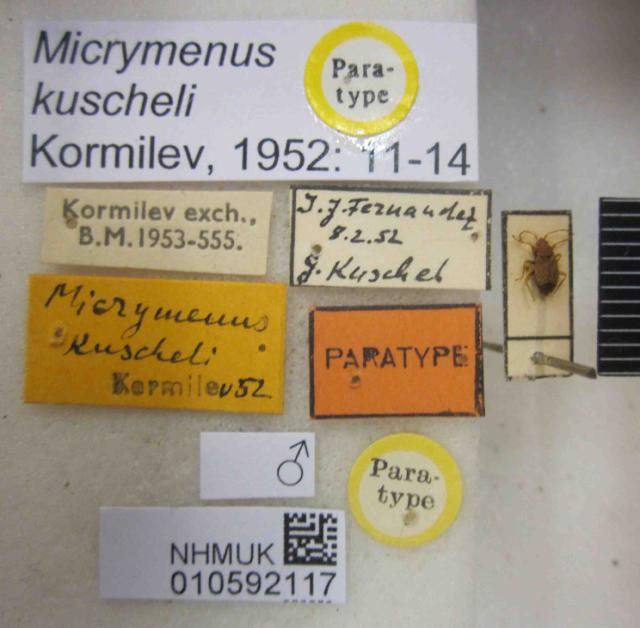 Micrymerus kuscheli. Paratype. (BMNH) - (CC BY-NC 4.0) Photo by Stuart Cole, reproduced with permission from the Natural History Museum, London, UK.