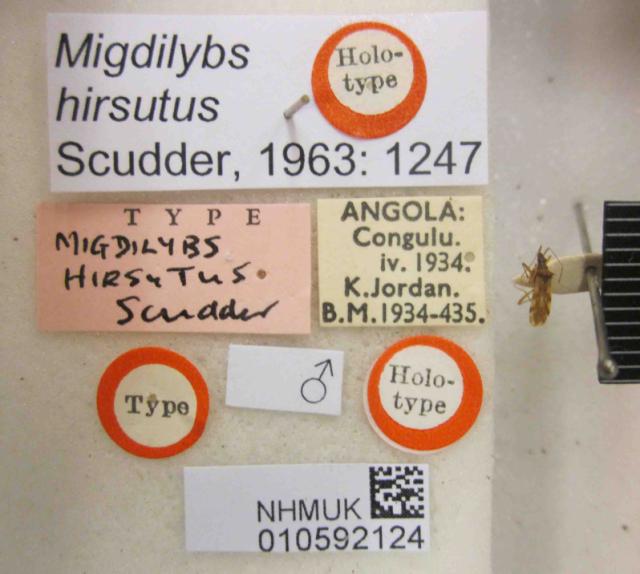Migdilybs hirsutus. Holotype. (BMNH) - (CC BY-NC 4.0) Photo by Stuart Cole, reproduced with permission from the Natural History Museum, London, UK.