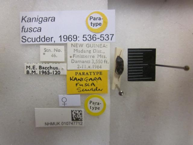 Kanigara fusca. Paratype. (BMNH) - (CC BY-NC 4.0) Photo by Stuart Cole, reproduced with permission from the Natural History Museum, London, UK.