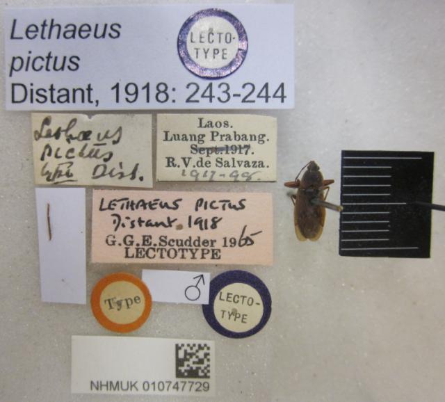 Lethaeus pictus. Lectotype. (BMNH) - (CC BY-NC 4.0) Photo by Stuart Cole, reproduced with permission from the Natural History Museum, London, UK.