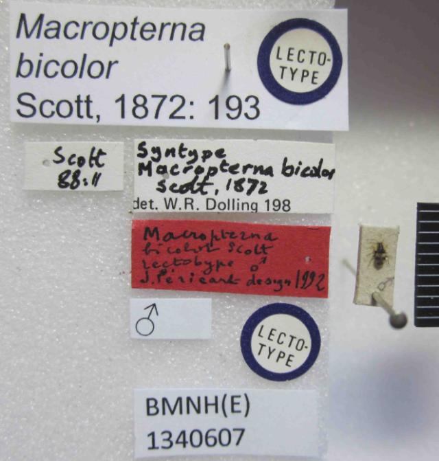 Macropterna bicolor. Lectotype. (BMNH) - (CC BY-NC 4.0) Photo by Stuart Cole, reproduced with permission from the Natural History Museum, London, UK.