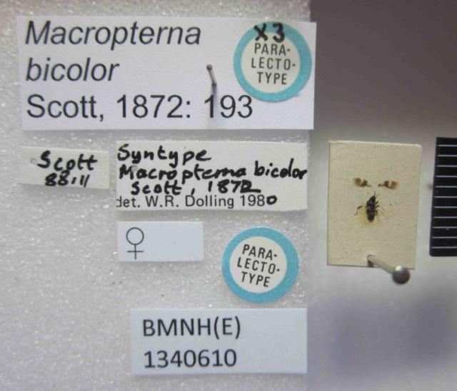 Macropterna bicolor. Paralectotype. (BMNH) - (CC BY-NC 4.0) Photo by Stuart Cole, reproduced with permission from the Natural History Museum, London, UK.
