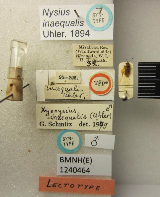 Nysius inaequalis. Syntype. (BMNH) - (CC BY-NC 4.0) Photo by Stuart Cole, reproduced with permission from the Natural History Museum, London, UK.