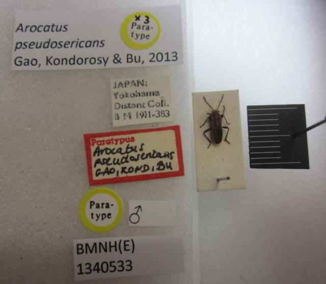 Arocatus pseudosericans. Paratype. (BMNH) - (CC BY-NC 4.0) Photo by Stuart Cole, reproduced with permission from the Natural History Museum, London, UK.