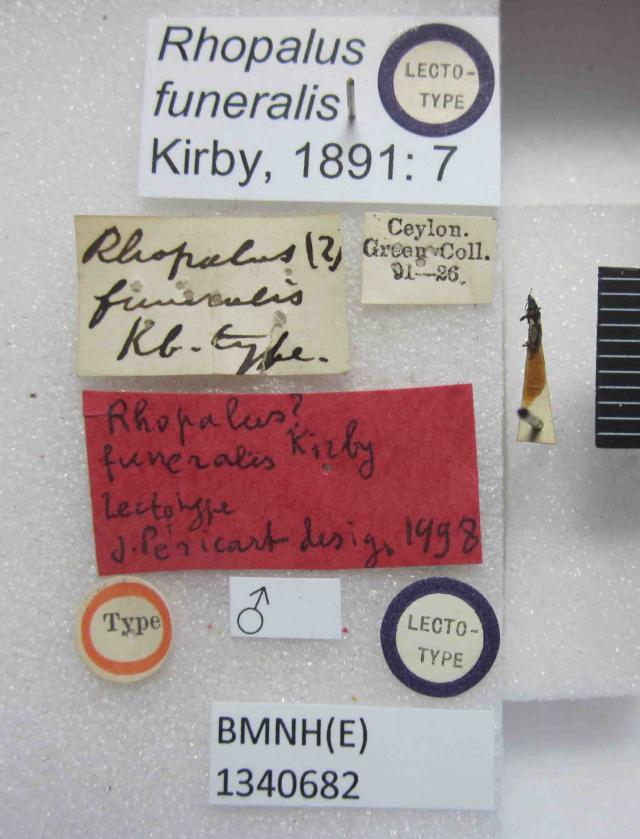 Rhopalus funeralis. Lectotype. (BMNH) - (CC BY-NC 4.0) Photo by Stuart Cole, reproduced with permission from the Natural History Museum, London, UK.