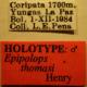 Kind of type: holotype